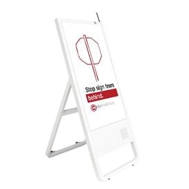 The customer stopper is available with diverse features. The stable frame may be rolled and folded, and is entirely customizable with your colours and your logo. It comes with a Windows 10 operating system and is optionally available with Android.